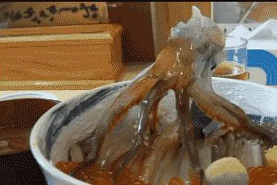 章魚的可以說是生命力最頑強的海鮮了,它的大腦與神經系統十分特殊,在觸手在完全被剁掉的情況下,仍舊能夠進行獨立運動。所以在韓國就誕生了這樣一種口感“豐富”的菜——生吃活章魚。生吃章魚的時候一般會配上一些醬料或者香油,吃入口中後,章魚的觸手會在嘴裏繼續活力滿滿地蠕動,可以說是非一般的感覺了。