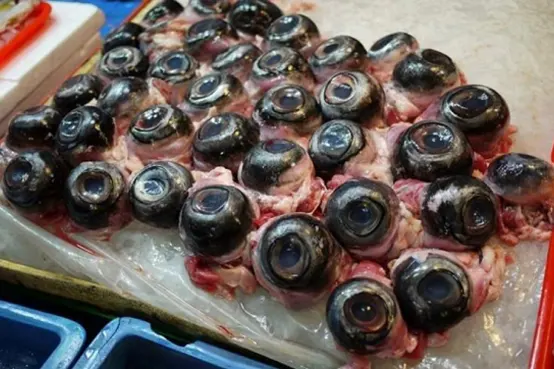 關於金槍魚,我們吃得最多的都是金槍魚沙拉,卻不知道金槍魚的眼睛其實也是很受歡迎的海鮮!蘸上一些醬料,生吃下去據說味道非常刺激,但是如果沒有一定的心理素質,恐怕很難嘗試。