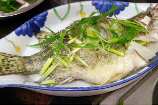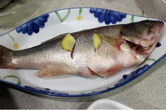 (圖為鱸魚) 然後把切好的薑絲,塞到魚的肚子和頭部裏面,適量就好。 底部放2根蔥,2片薑片。 魚的面上,也可以放2根蔥,2片薑片。 *重點來了。重點真的來了:下鍋前,在魚的身上抹上一層薄薄的生粉,各位美女請注意,不要像塗臉那樣抹那麼多那麼厚,一點點淺淺的就好啦。 為什麼?!因為這樣蒸出來的魚皮又滑又嫩,據說是個五星級大廚的秘訣,我試過是不錯。同樣能保持內部肉質的嫩滑。真個真的有用哦!