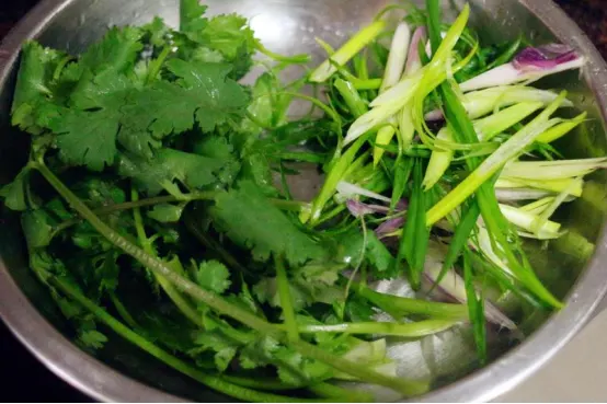來,看看我的蔥絲。有點輕微的,不是很嚴重的強迫症,我就喜歡切絲,雖然沒到大酒店級別,但比我媽媽的蔥花要強,我爸乾脆就蔥段。我還是喜歡蔥絲