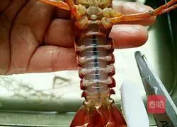 1.龍蝦清水養1小時以上(中間多換幾次水),扯掉沙線,用剪刀修乾淨。