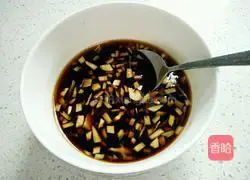6.加入生抽、香醋、白糖、鮮貝露調勻,做成蘸料汁。